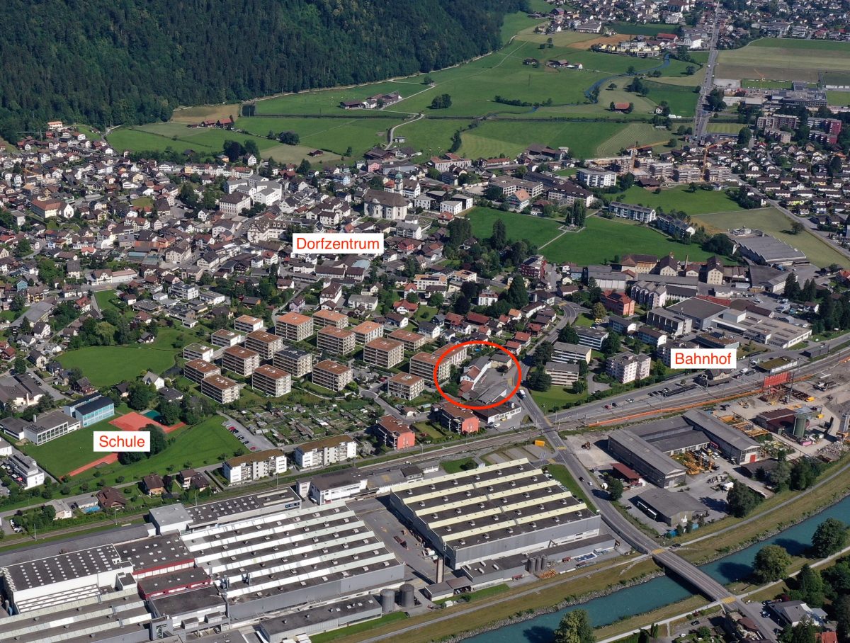 – Zentrale Lage: In unmittelbarer Nähe zu Einkaufsmöglichkeiten, Schulen und öffentlichen Verkehrsmitteln (Direkte Zugverbindung nach Zürich). Idyllisch gelegen neben einem kleinen Flüsschen mit Blick in die Glarner Alpen.